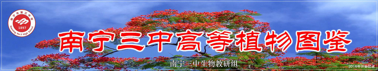 经过我校生物组教师的努力,我们制作了网络版《南宁三中高等植物图鉴(2016年开始记录)》,向广大师生和校友展示三中高等植物的概况,为社会各界了解三中提供生物学资料,也给校内生物爱好者及研究性学习小组提供丰富的研究素材。本图鉴主要面向在校学生和普通读者,在编制中努力追求学术的严谨性,也体现科普性和艺术性。本网页中的745种植物全部配有照片,所展示的图片标本全部出自南宁三中青山校区,所有图片(含网页配图)全部在南宁三中青山校区拍摄。在植物鉴定和名称选择上,我们主要的依据是《中国高等植物图鉴》、中国植物图像库(PPBC)等权威著作及网站,本地常见的植物适当选用本地的别称,以方便大家辨认。在提供图片资料的同时,尽量提供专业网站相关词条链接,分科图鉴中也插入了一些介绍相关植物的小知识,以实现知识的扩展。在植物鉴定、资料查询和网页制作中难免会有疏漏,敬请广大师生、学者予以指正,使该图鉴能不断完善,更好的为公众服务。