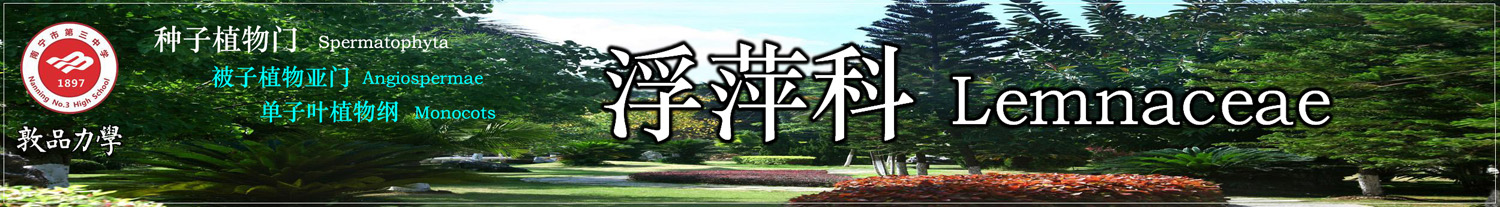 浮萍科植物除北极区外,全球均有分布,我国有6种。植物体浮水生活,是微小的草本,生于淡水中。浮萍的植物体退化为鳞片状体,只有一条根,茎不发育,以圆形或长圆形的小叶状体形式存在。