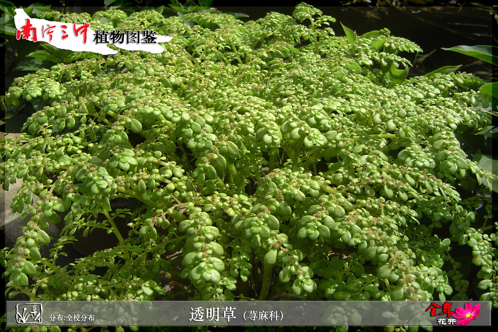 从名称上看,这个科与织物纤维有关,是的,苎麻属、水麻属、紫麻属、水丝麻属、雾水葛属、荨麻属、艾麻属、锥头麻属等,历来都是栽培或野生纤维植物的来源。校园里随处可见的透明草以其独特的株型,良好的适应性,也慢慢变成盆栽植物。